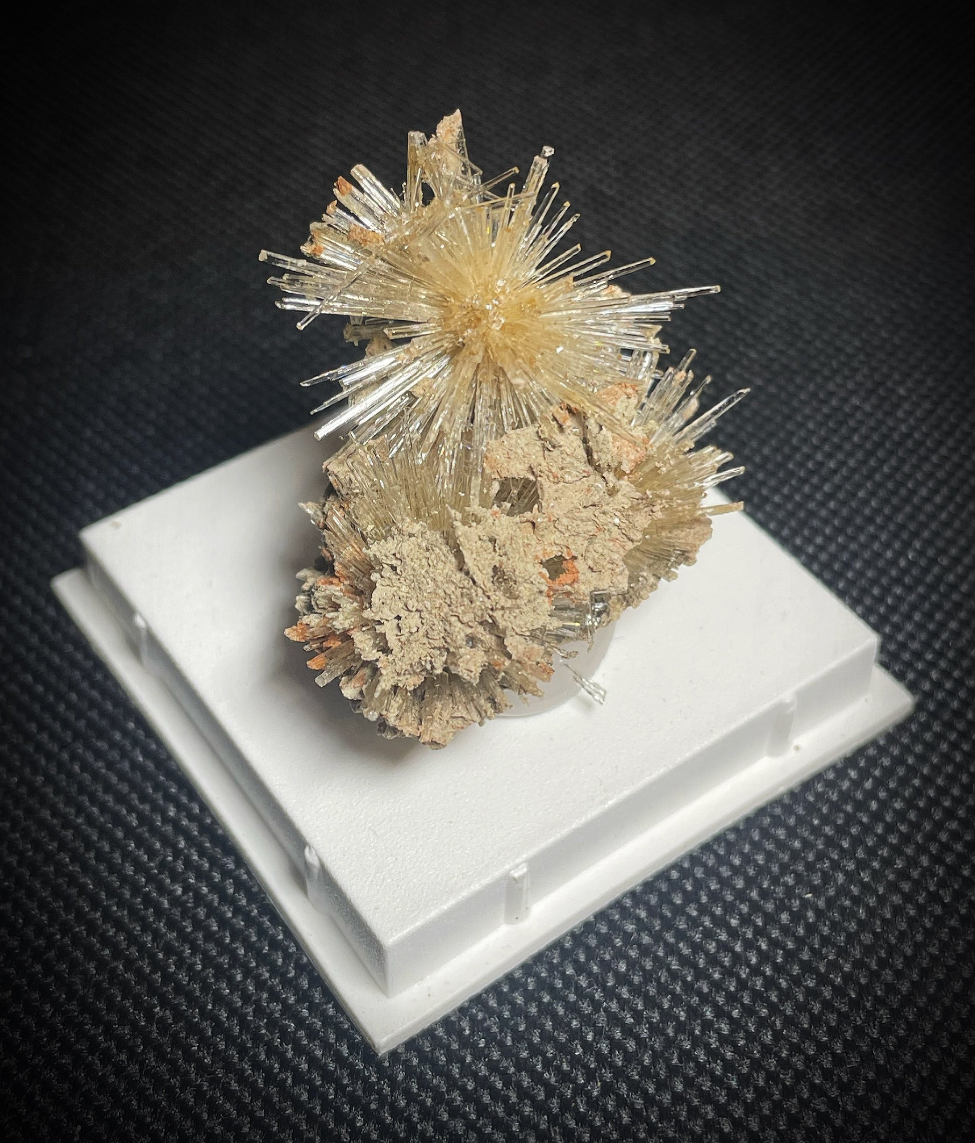 Aragonite, also known as Golf ball or Sputnik Aragonite, is one of the three calcium carbonate minerals that naturally occurs within mother nature (the other two being Calcite and Vaterite). It's commonly found crystallized in the form of small prismatic crystals, masses, stalactites, and spherical radiating aggregates. Aragonite was first discovered in 1790 by Abraham Gottlob Werner in Molina de Aragón, Guadalajara, Castile-La Mancha, Spain.